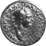 laureate head of Domitian, right