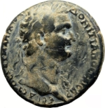 laureate head of Domitian, with aegis, right