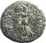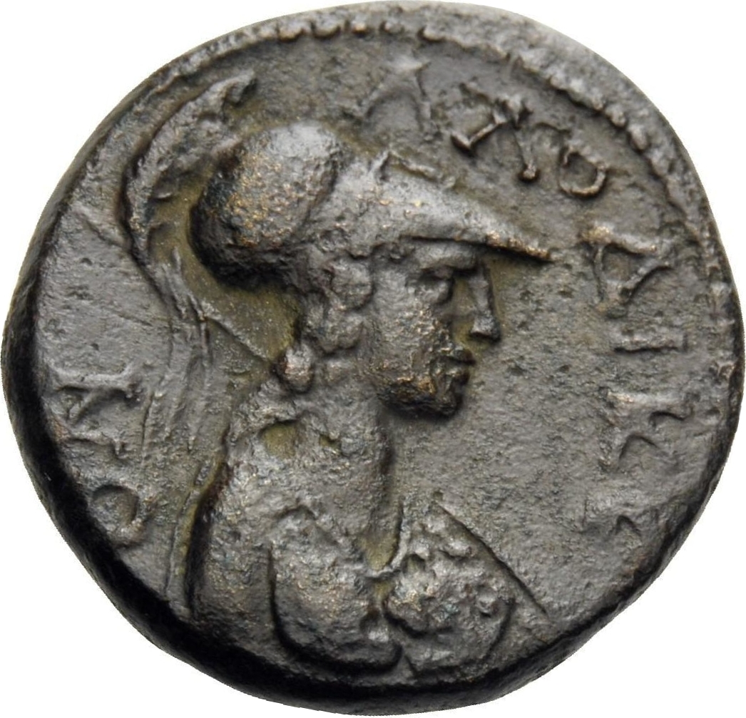 Head on obv. might be Athena, rather than Roma. But Roma would make a neat parallel between obvs. of the two smallest denominations: larger of the two would have the head of Roma, smaller the head of Laodicea. Another possibility would be Athena in the sense of Minerva, patron goddess of Domitian.
