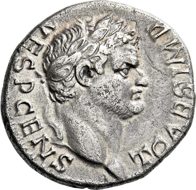 laureate head of Titus, right; below, o