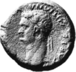 laureate head of Domitian, left