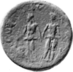 the two harbours, Lechaeum and Cenchreae, as nymphs, turned opposite ways, each holding a rudder