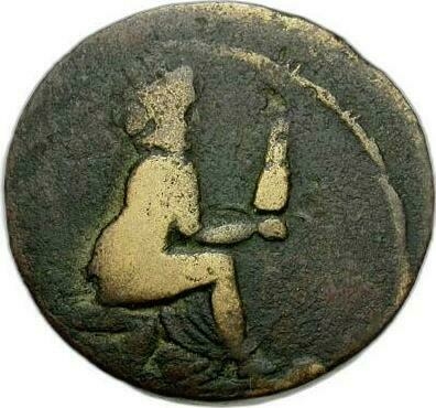 Tyche seated, right, holding corn-ears and with river god Kydnos beneath