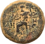 Tyche seated, right, holding corn-ears and with river god Kydnos beneath