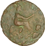 Tyche seated, right, holding corn-ears and with river god Kydnos beneath
