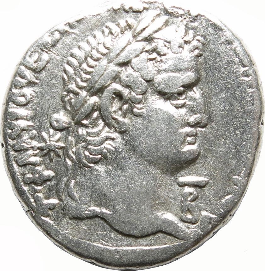 laureate head of Vespasian, left, with drapery on far shoulder (usually obscure)