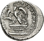 eagle, left, standing on garlanded altar, head right, caduceus in beak, palm left