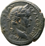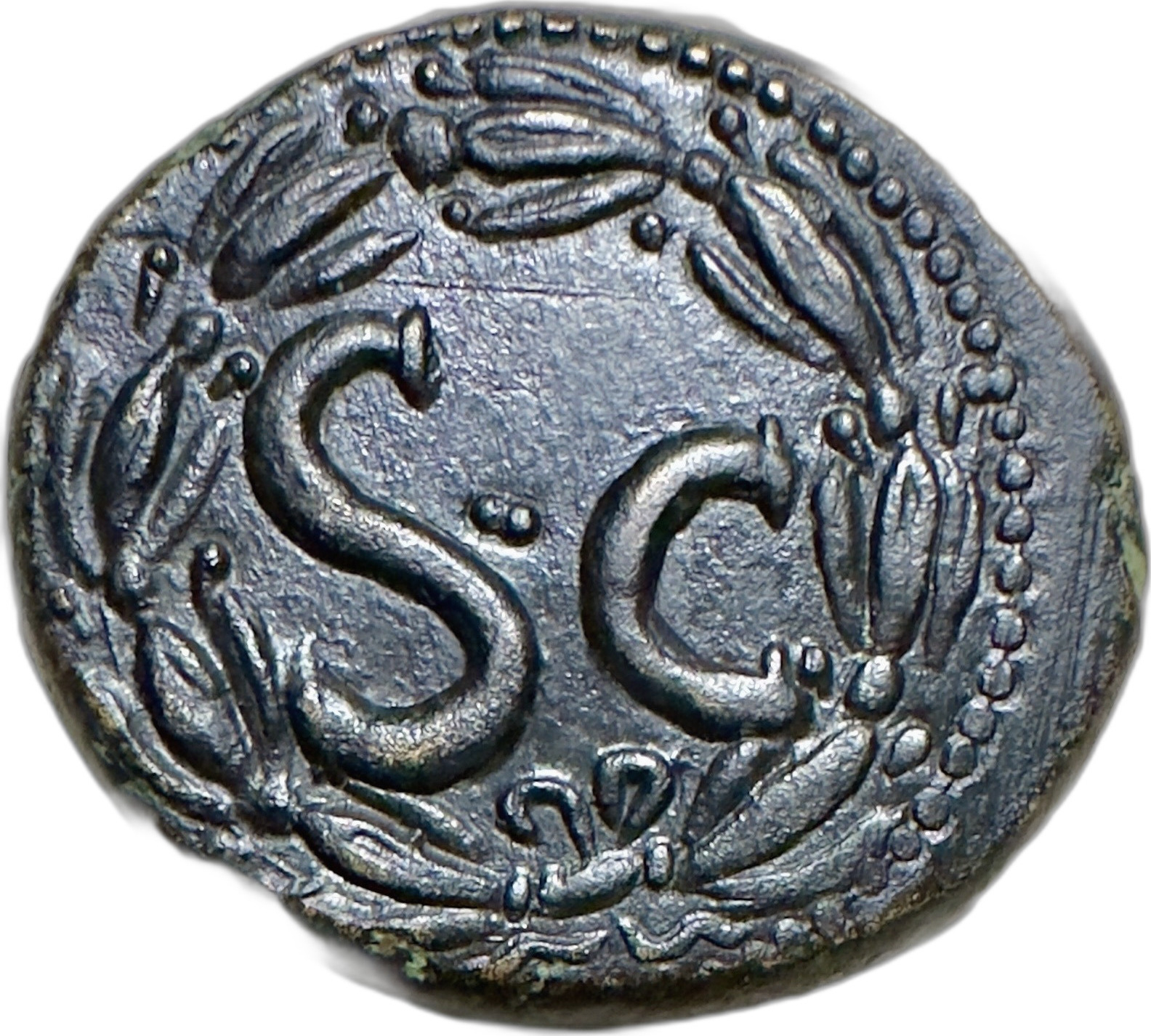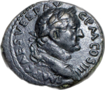 laureate head of Vespasian, right, with slight drapery on the front of the shoulder |