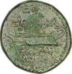 galley, left, stem terminating forward in volute; aphlaston at stern |