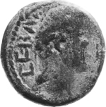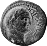 laureate head of Vespasian (?), right