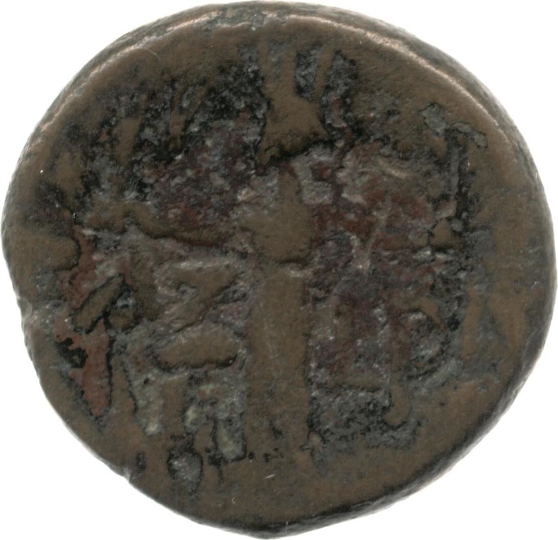 Tyche standing, left holding branch and two corn-ears (?)