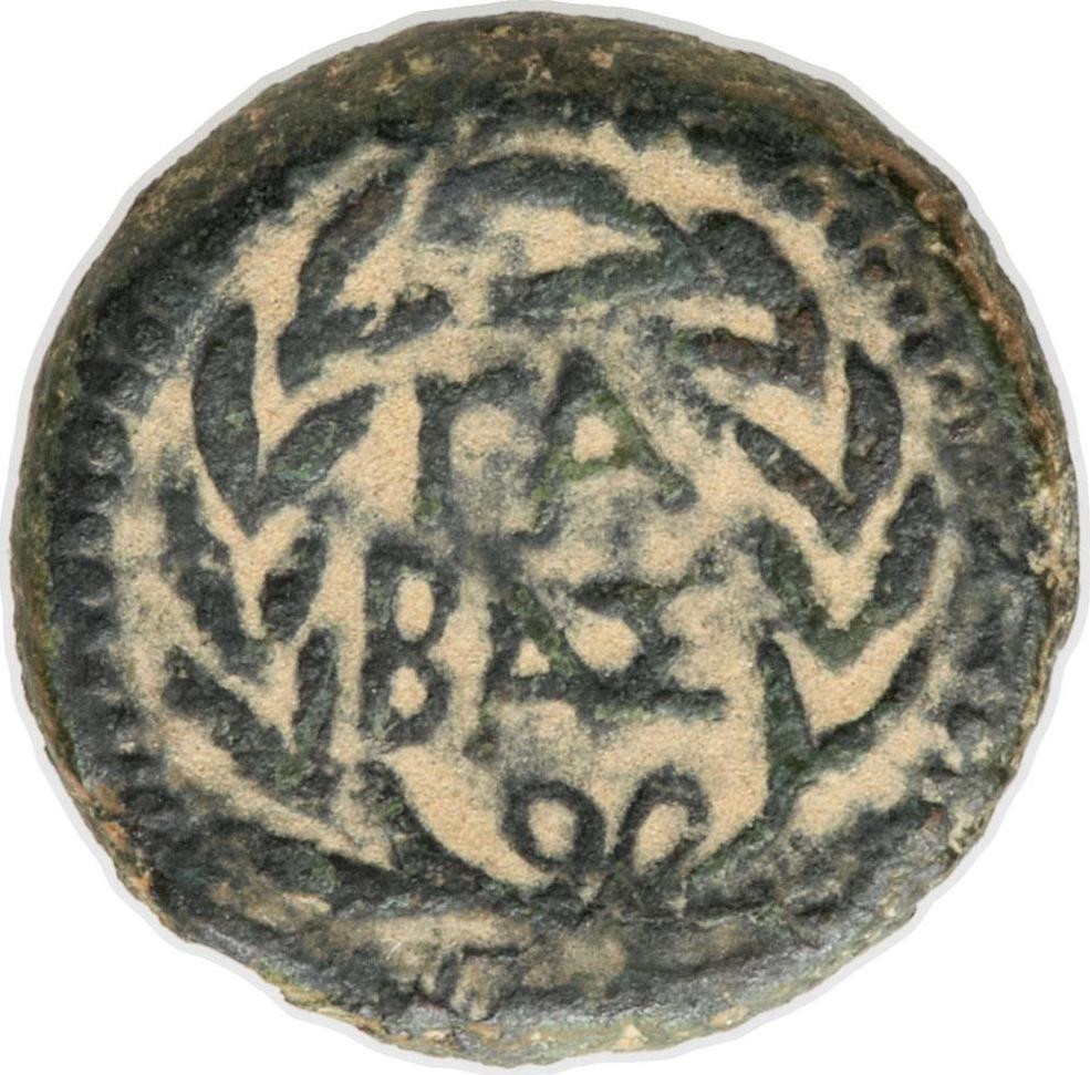 Formerly attributed to Agrippa I: RPC I, 4980 (= https://rpc.ashmus.ox.ac.uk/type/26604). For the new attribution, see D. B. Hendin and R. Bachar, ‘A So-Called Agrippa I Coin Reattributed to Gaba’, INR 11 (2016),pp. 119-26, suggesting a date in the late first century AD.