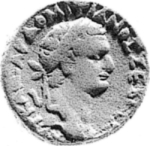 laureate head of Domitian, right