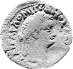 laureate head of Domitian, right