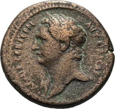 head of Domitian wreathed with corn (?), left, aegis by neck