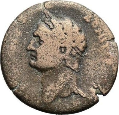 laureate head of Domitian, left