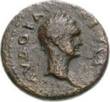 laureate head of Domitian, right