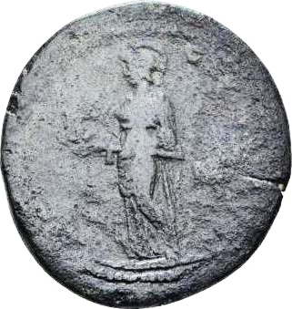 it is described as having 'Lorbeerkranzter Kopf', but the wreath varieties are very hard to distinguish. Friedlander thought that Athena was holding a spear rather than the double axe which is normal on later Oxyrhynchite coins, but a double axe seems possible