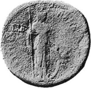 Athena standing facing (?), head right, holding spear and shield resting on ground