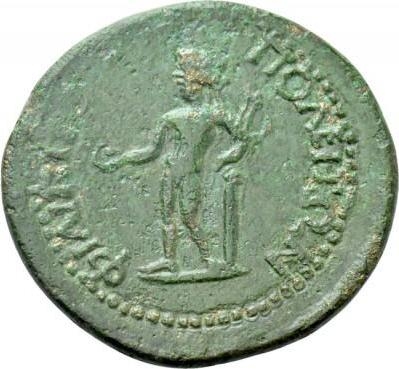 The figure on the reverse is interpreted asApollo holding patera and lyre