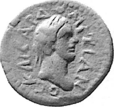 laureate head of Domitian, right