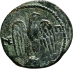 The type is a variant of 641, with a slightly different obv. legend, and two monograms instead of a legend on the rev. This is the first coin smaller than the sestertius-sized coins to have the monograms, which stand for ΝΕΙΚΑΙΕΙΣ ΠΡΩΤΟΙ.