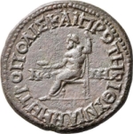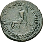 Zeus seated, left, holding patera and sceptre |