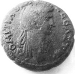 Hera in long chiton standing facing, head left, holding ears of grain (?) in her right hand, her left resting on sceptre