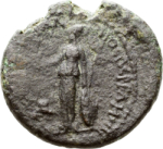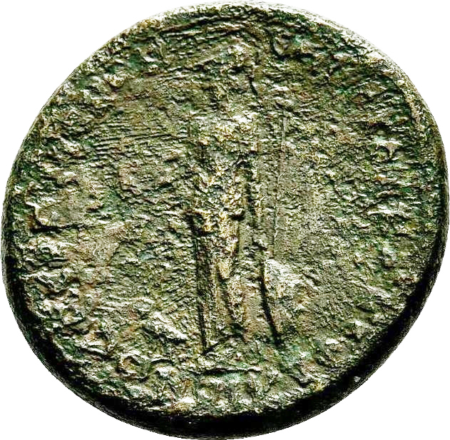 The formula of the strategos' name is the same as on 921, indicating that this was made in the reign of Domitian. For further discussion of this coin, see RPC I, pp. 399-400, where it is regarded as a coin depicting Domitian. Augustus is another possibility.