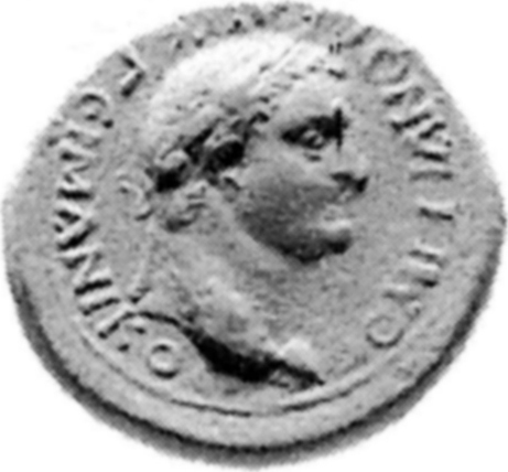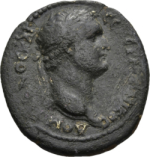laureate head of Domitian, right