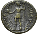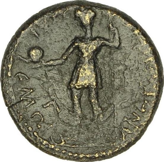 The spelling of Vespasian's name is not very clear. The reading ΒƐϹΠΑϹΙΑΝΟΝ given by SNG Cop 144 can be disregarded, as the relevant part of the coin is not on the flan. ΒΑϹΠΑϹΙΑΝΟΝ, which is given by Mu SNG, seems clear, and the coins all seem to be from the same obv. die. The order to the obv. legend can be determined since legends on coins of Cyme at this time all start at five o'clock. For the design, see Dräger p. 336, n. 2.