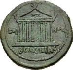 temple with eight columns on podium of two steps; in pediment, wolf and twins