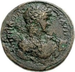 bare-headed, half-length bust of Αntinous, right, holding pedum (?) on left shoulder