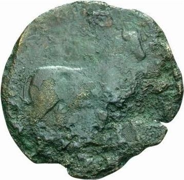 bull standing right; crescent moon on flank