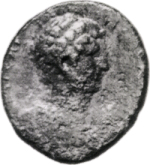 bare-headed cuirassed bust of Hadrian, right, with paludamentum, seen from front
