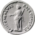 Securitas standing left, holding patera in extended right hand and sceptre in left arm leaning on column