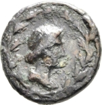 Βust of Kore Soteira right, wearing corn-wreath; all within wreath of corn