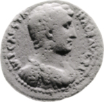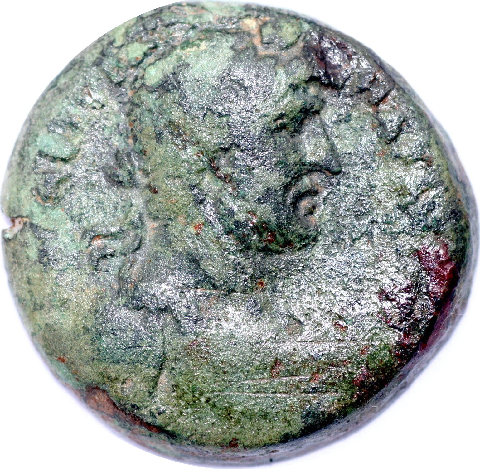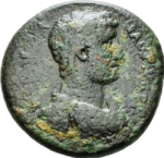 bare-headed cuirassed bust of Hadrian, right, with paludamentum, seen from front
