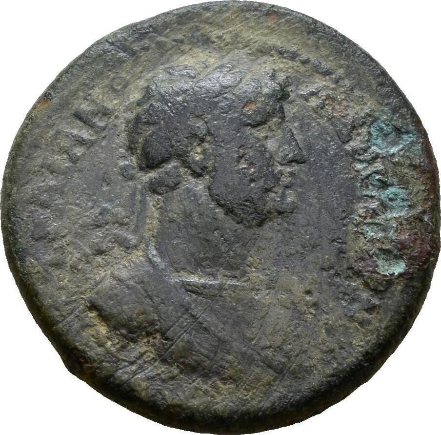 laureate and cuirassed bust of Hadrian, right