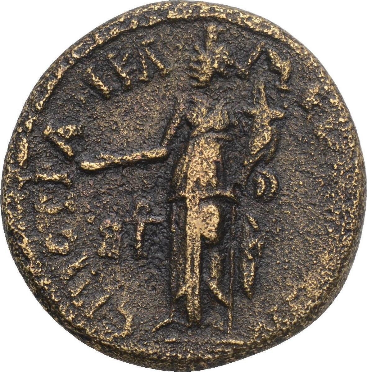 Tyche with kalathos and himation standing left, holding patera in right hand and cornucopia in left |