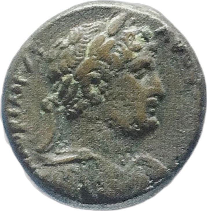 laureate and cuirassed bust of Hadrian, right, with paludamentum, seen from front