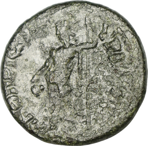 Dionysus standing left, himation over lower limbs and left shoulder, holding cantharus in right hand, left resting on thyrsus