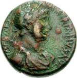 laureate and cuirassed bust of Hadrian, right, with paludamentum, seen from front