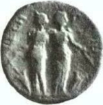 the two harbours, Lechaeum and Cenchreae, as nymphs, turned opposite ways, each holding a rudder