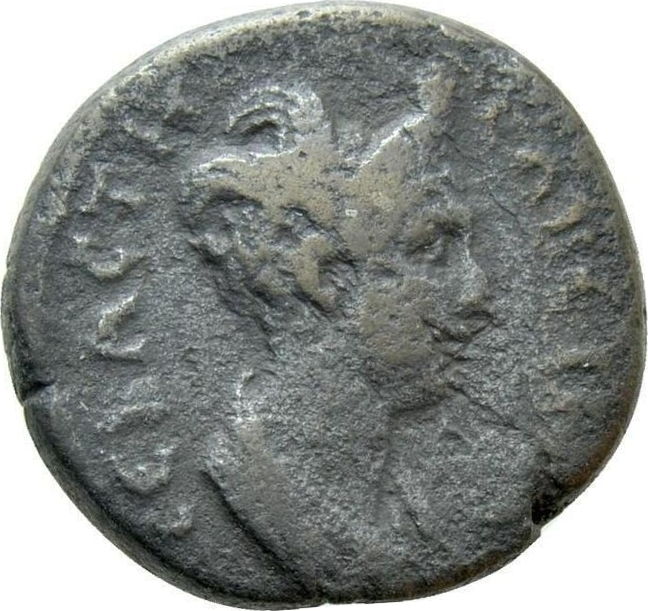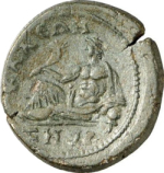 river god Kaleon reclining, left, himation over lower limbs, holding cornucopia in right hand, resting with left arm on inverted vase