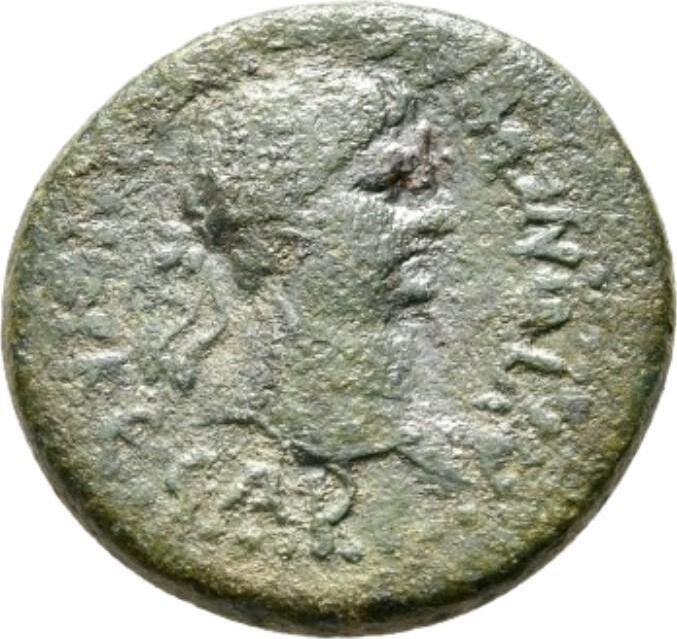 - ΤΡΟΙΑΝΟC ΚΕCΑΡ (sic); rev.:ƐΦƐϹΙƐ