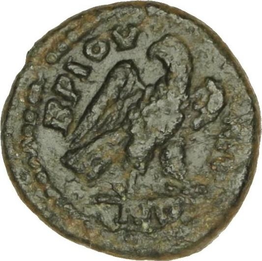 radiate, draped bust of Helios, right