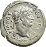 laureate head of Hadrian, right, with small aegis on left shoulder