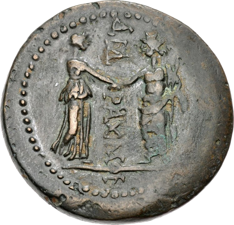 Helios on l., and Rhodos on r.