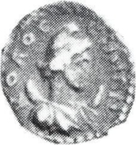 bust of Men, right, on crescent